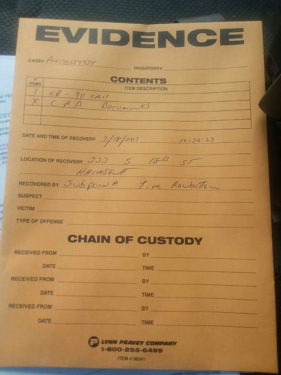 When Rowbottom attempted to serve the Harrisburg Police department today, he was told “No” they can’t accept the supoena.