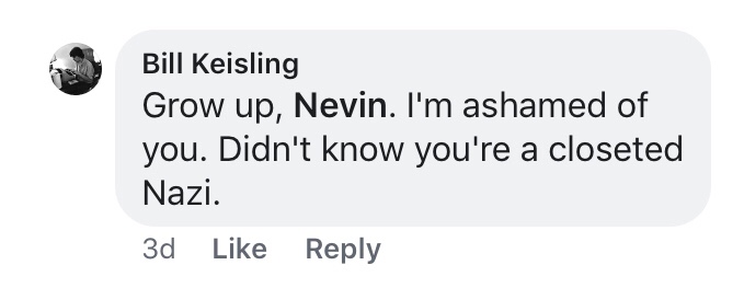 In response to this post, Keisling’s own followers have become fed up with the divisive nature of his ideology, and they confront his insensitivity towards the Holocaust genocide.