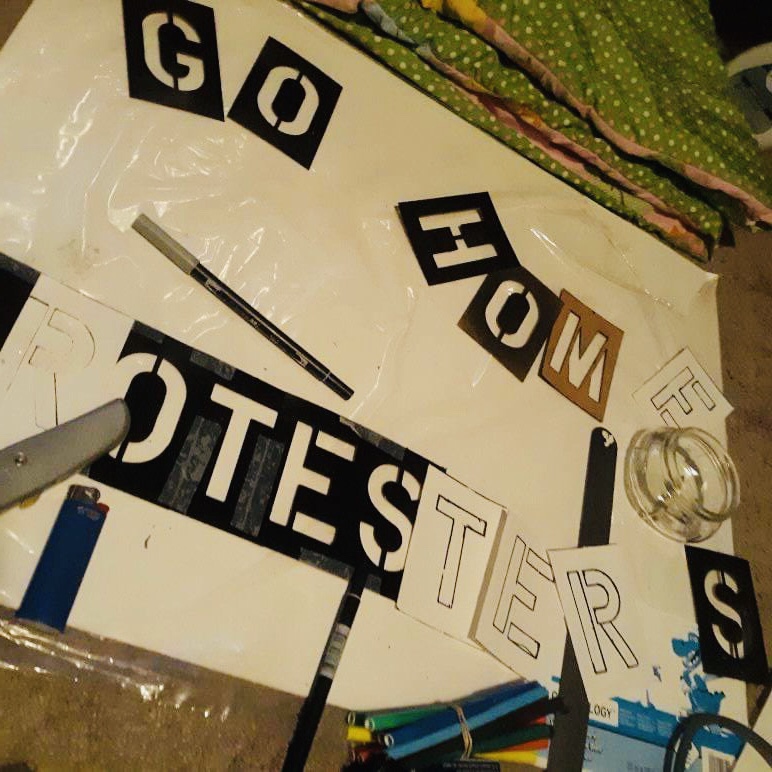 Another counter-protester proudly posted an image of signage being prepared for the event in Harrisburg. The lettering was being arranged to spell “GO HOME PROTESTERS.”