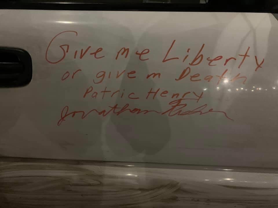 The night before the protest, it was reported that a man sleeping in his vehicle on Commonwealth Avenue with a message written in red ink.