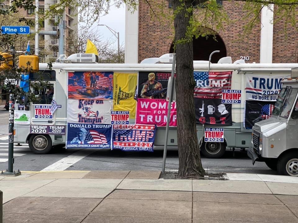 The Women for Trump bus was spotted in downtown Harrisburg early Monday as well.