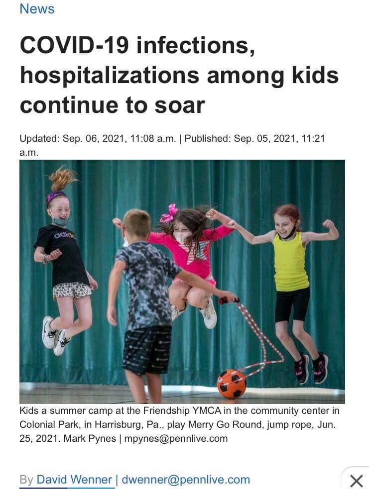 That’s quite a statement; a “danger ahead” warning. And the headlines are screaming the same. “Hospitalizations among kids continue to soar,” reads a Pennlive.com headline on Sept. 5, 2021.