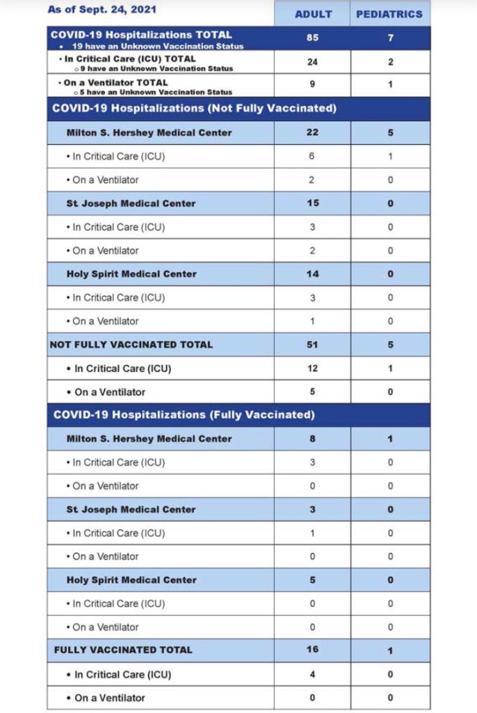 WellSpan Health: Dashboard (Covid admissions, but no breakthrough data, as of Sept. 24)