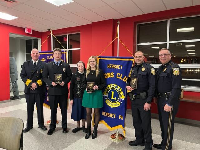 HERSHEY, Pa. – During its January 2022 meeting, members of the Hershey Lions Club celebrated its citizenship and patriotism evening by recognizing members of the community which included first responders and an educator. This marks the 36th year that first responders have been recognized and the 20th year that educators have been recognized. The Hershey Volunteer Fire Company hosted the event.