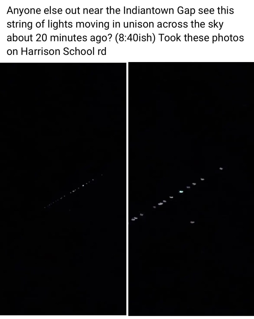 Hershey, Pennsylvania – It was reported at 8:40 p.m. on Saturday night when sky gazers in central Pennsylvania spotted a long line of starlink satellites, followed by some unconfirmed reports of the sound of booming or explosions.
