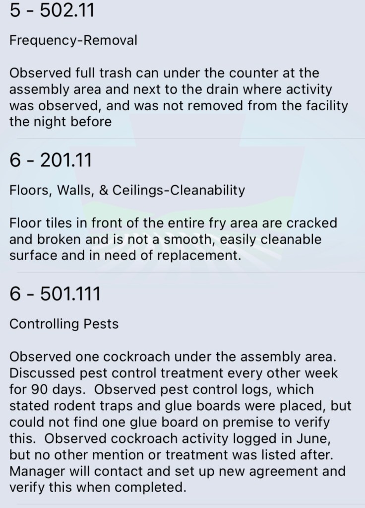 Update: The facility was granted permission to resume operations after passing a follow-up inspection on 9/25/23.