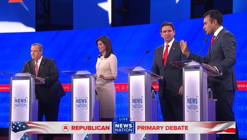 Vivek Ramaswamy speaking at televised GOP debate, December 6, 2023