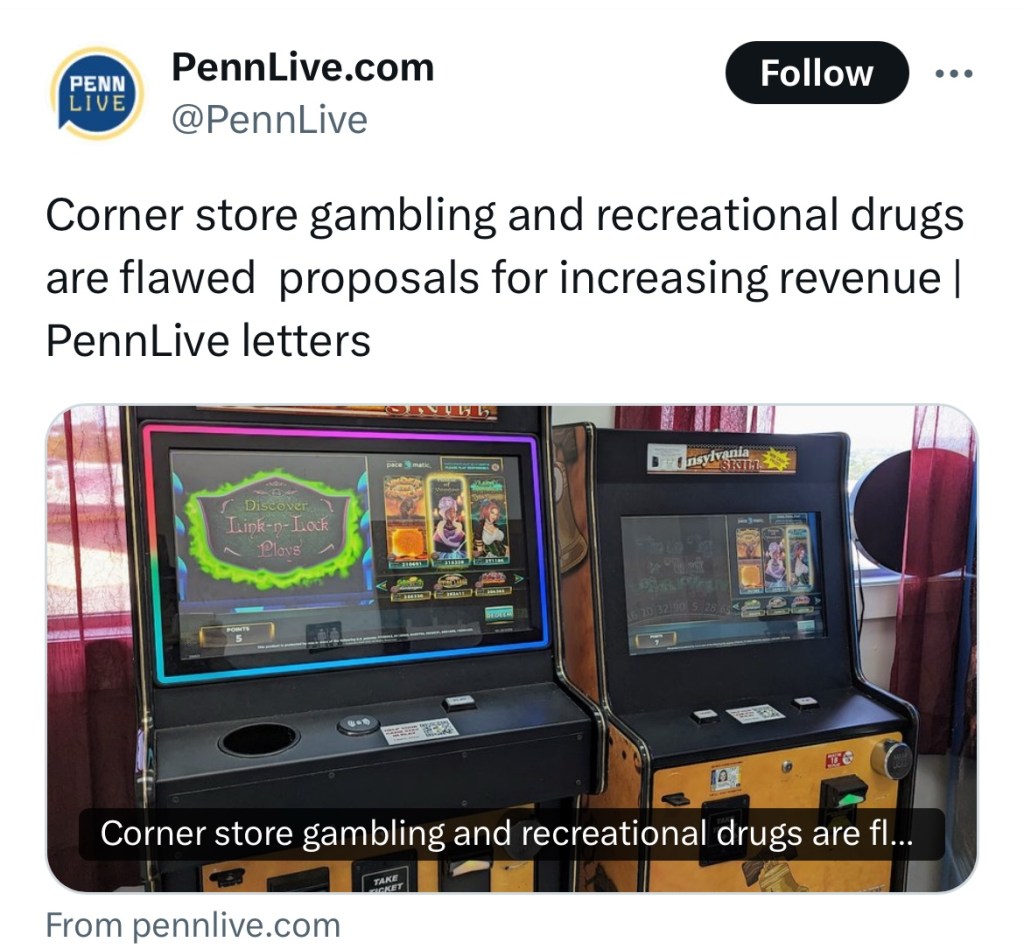 On Friday, PennLive published a letter to the editor signed by the Secretary of Derry Township Planning Commission. The subject of the letter criticized a budget proposal of Pennsylvania Governor Josh Shapiro to rely upon revenue from recreational drugs and corner store gambling machines. PennLive circulated the opinion on X (formerly Twitter, now owned by Elon Musk), where it gained attention as a rare conservative perspective being featured by PennLive. In the letter it was concluded that, “Shapiro’s plan is a degenerate proposal for the future generations of families and businesses in the Keystone State.”