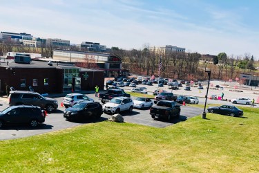 A line of vehicles wrapped around the block as some medical marijuana dispensaries remain open to PA’s 147,000 registered patients during the coronavirus pandemic.