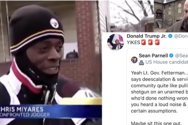 Trump Jr. retweeted criticism of PA Lt. Gov. Fetterman for pulling shotgun on unarmed black jogger, making threats of violence